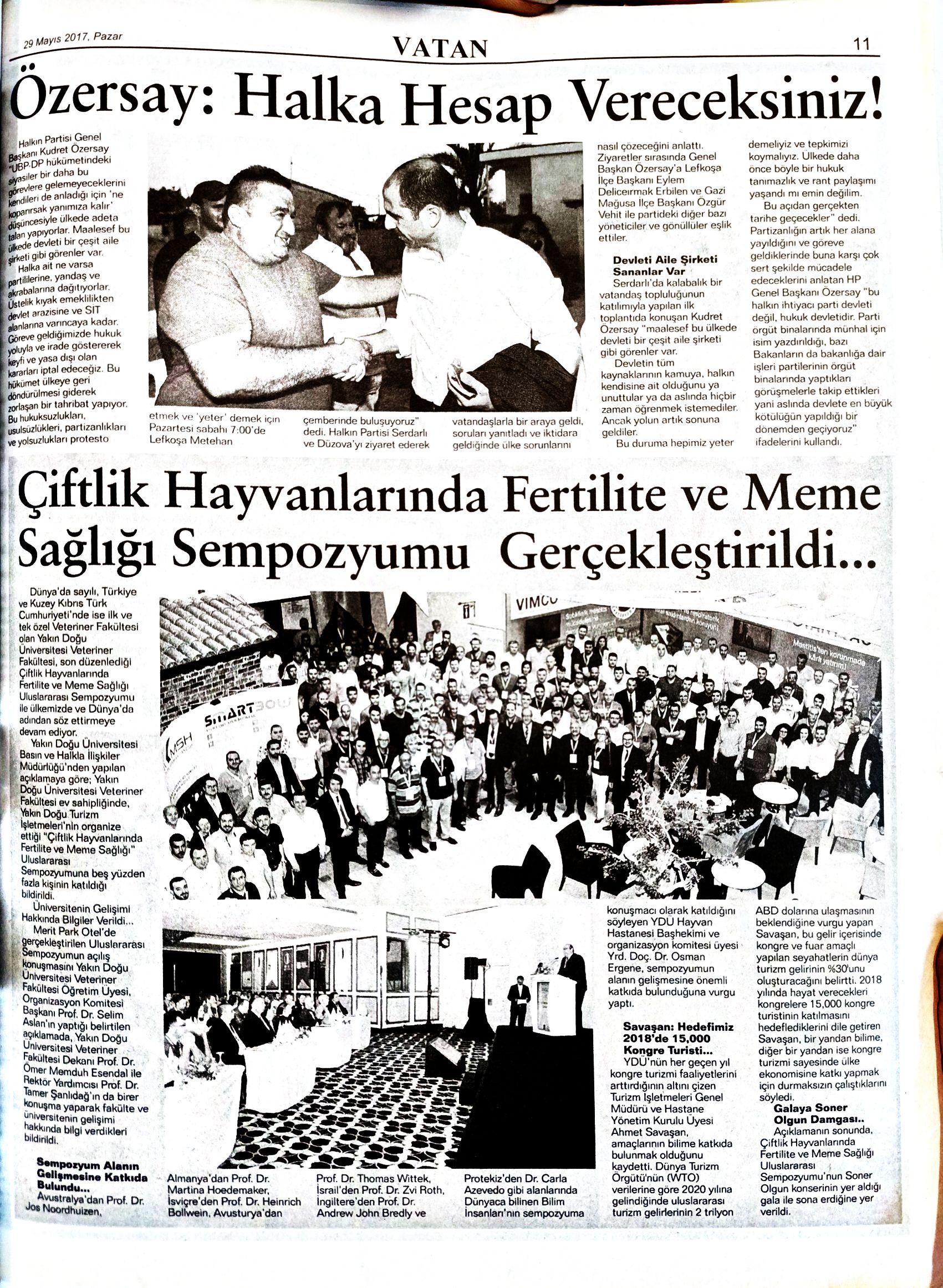 Dünya’da sayılı, Türkiye ve Kuzey Kıbrıs Türk Cumhuriyeti’nde ise ilk ve tek özel Veteriner Fakültesi olan Yakın Doğu Üniversitesi Veteriner Fakültesi, son düzenlediği Çiftlik Hayvanlarında Fertilite ve Meme Sağlığı Uluslararası Sempozyumu ile ülkemizde ve Dünya’da adından söz ettirmeye devam ediyor.